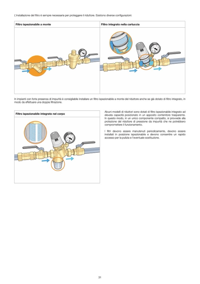 à è consigliabile installare un filtro ispezionabile a monte del riduttore anche se già dotato di filtro integrato, in