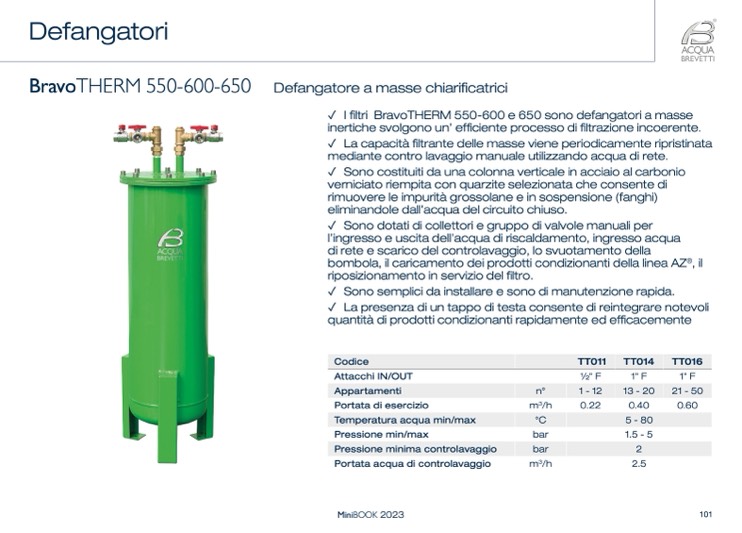 ✓ I filtri BravoTHERM 550-600 e 650 sono defangatori a masse