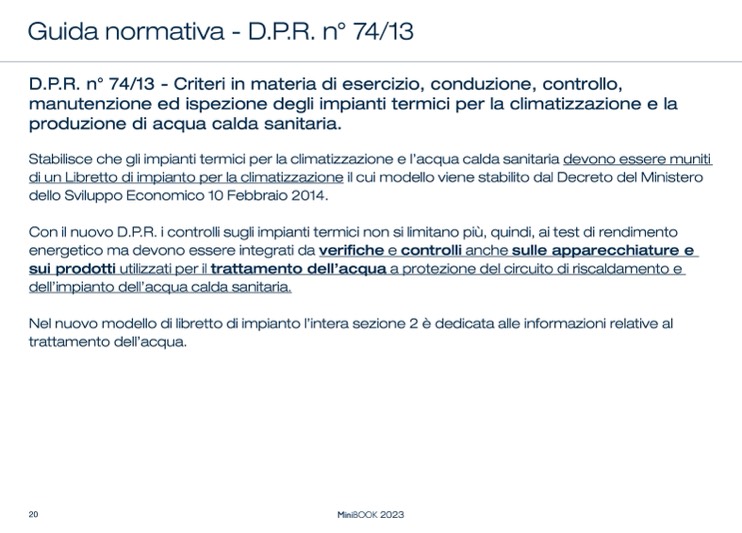 D.P.R. n° 74/13 - Criteri in materia di esercizio, conduzione, controllo,