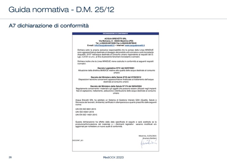 Lgs. n.31/01 e s.m.i. al fine di prevenire fenomeni incrostanti e corrosivi.