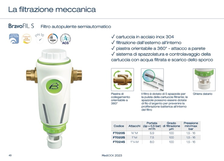 Il filtro è dotato di 5 spazzole per