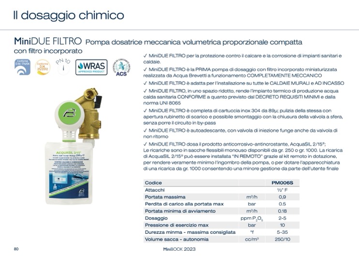 ✓ MiniDUE FILTRO dosa il prodotto anticorrosivo-antincrostante, AcquaSIL 2/15