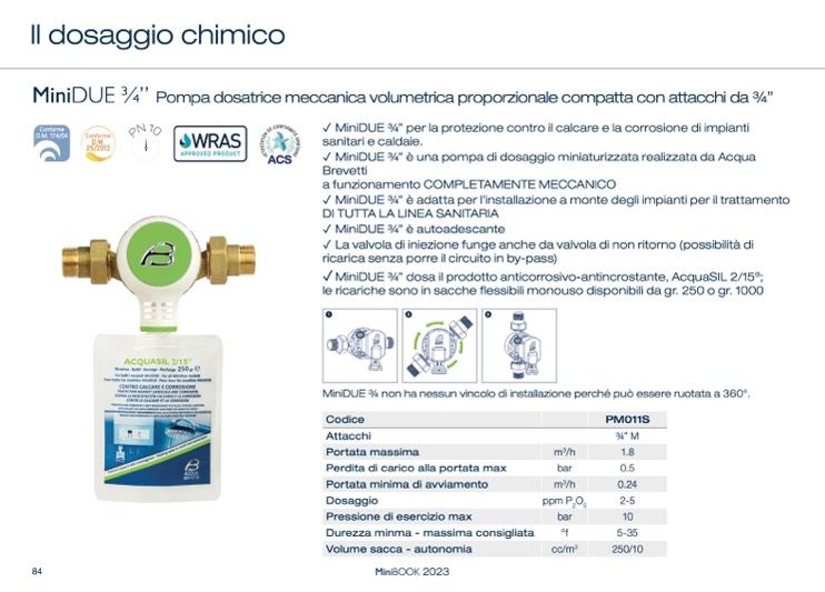 ✓ MiniDUE 3⁄4” dosa il prodotto anticorrosivo-antincrostante, AcquaSIL 2/15
