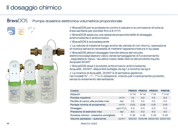 ✓ BravaDOS per la protezione contro il calcare e la corrosione di tutta la
