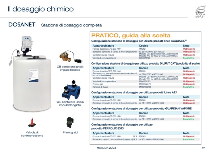 Configurazione stazione di dosaggio per utilizzo prodotti linea ACQUASIL