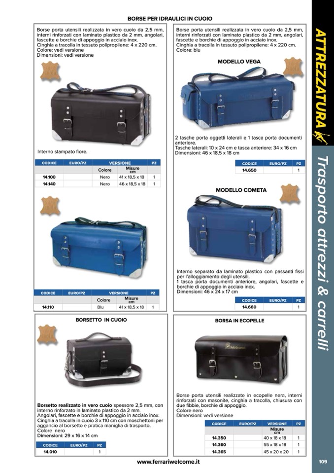 Borse porta utensili realizzata in vero cuoio da 2,5 mm,