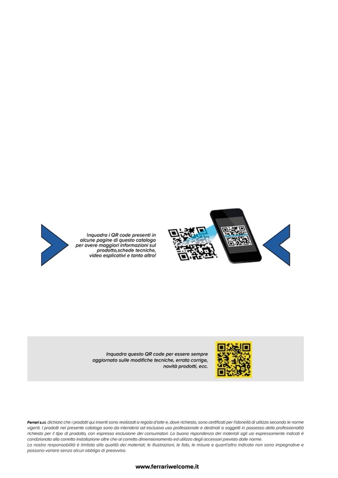 Ferrari s.r.l. dichiara che i prodotti qui inseriti sono realizzati a regola d’arte e, dove richiesto, sono certi