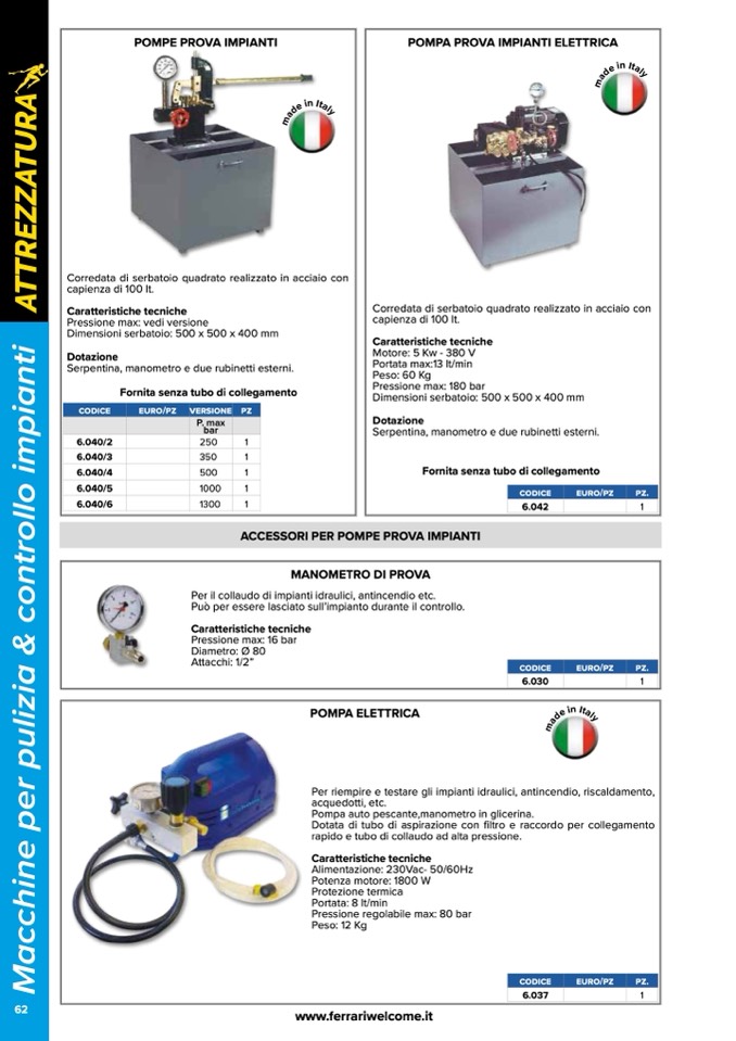 ACCESSORI PER POMPE PROVA IMPIANTI