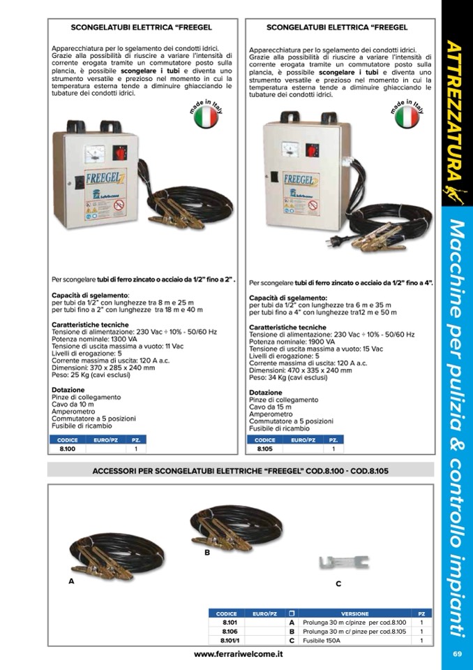 ACCESSORI PER SCONGELATUBI ELETTRICHE “FREEGEL” COD.8.100 - COD.8.105