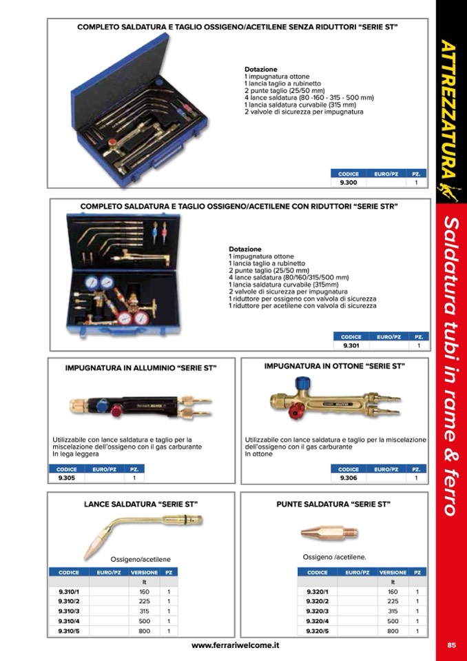 COMPLETO SALDATURA E TAGLIO OSSIGENO/ACETILENE SENZA RIDUTTORI “SERIE ST”