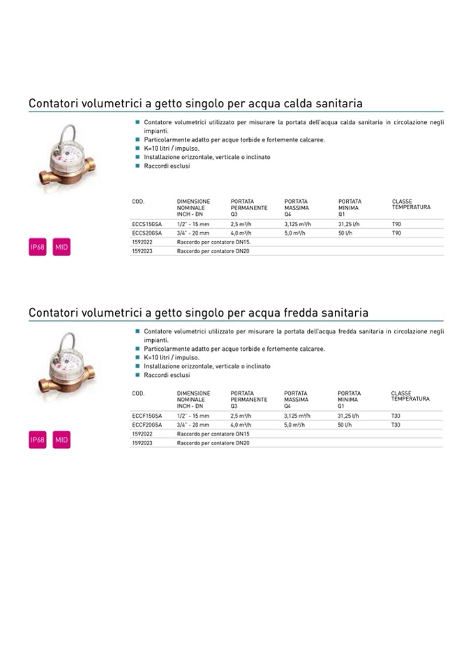 Contatore volumetrici utilizzato per misurare la portata dell’acqua fredda sanitaria in circolazione negli