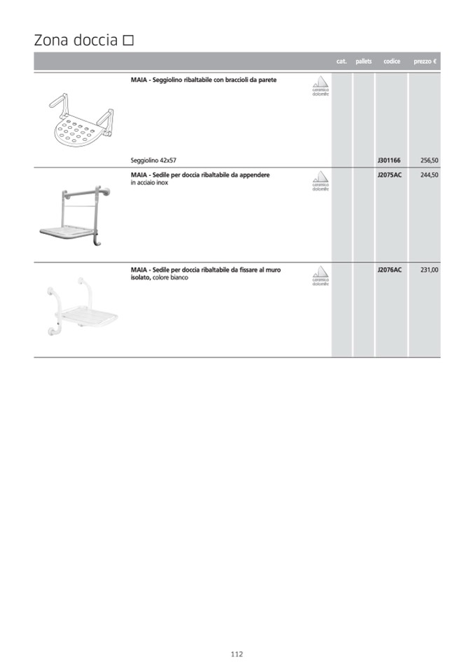 MAIA - Sedile per doccia ribaltabile da fissare al muro