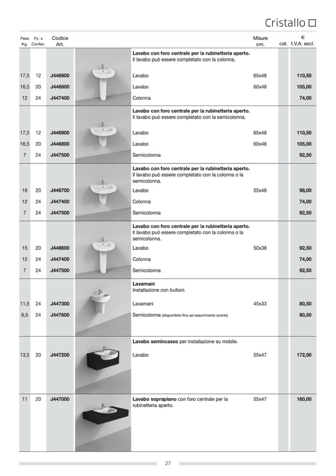 Il lavabo può essere completato con la colonna.