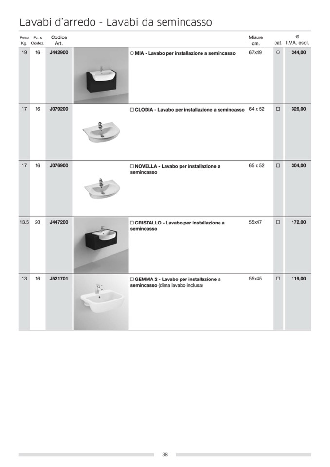 semincasso (dima lavabo inclusa)