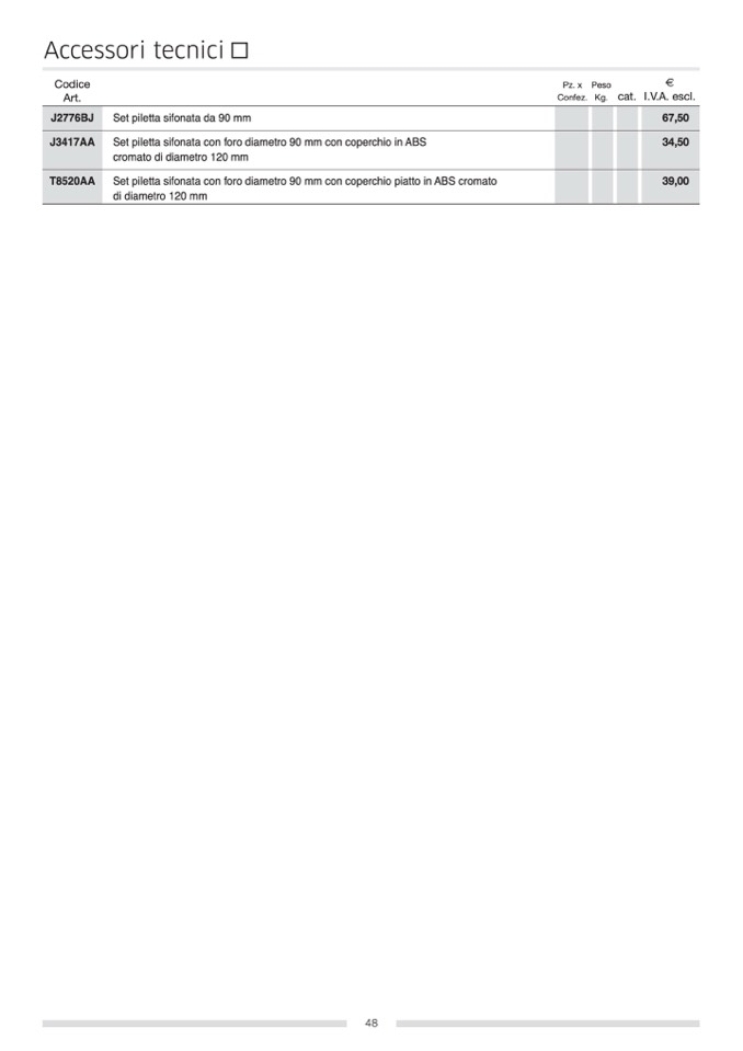 Set piletta sifonata da 90 mm