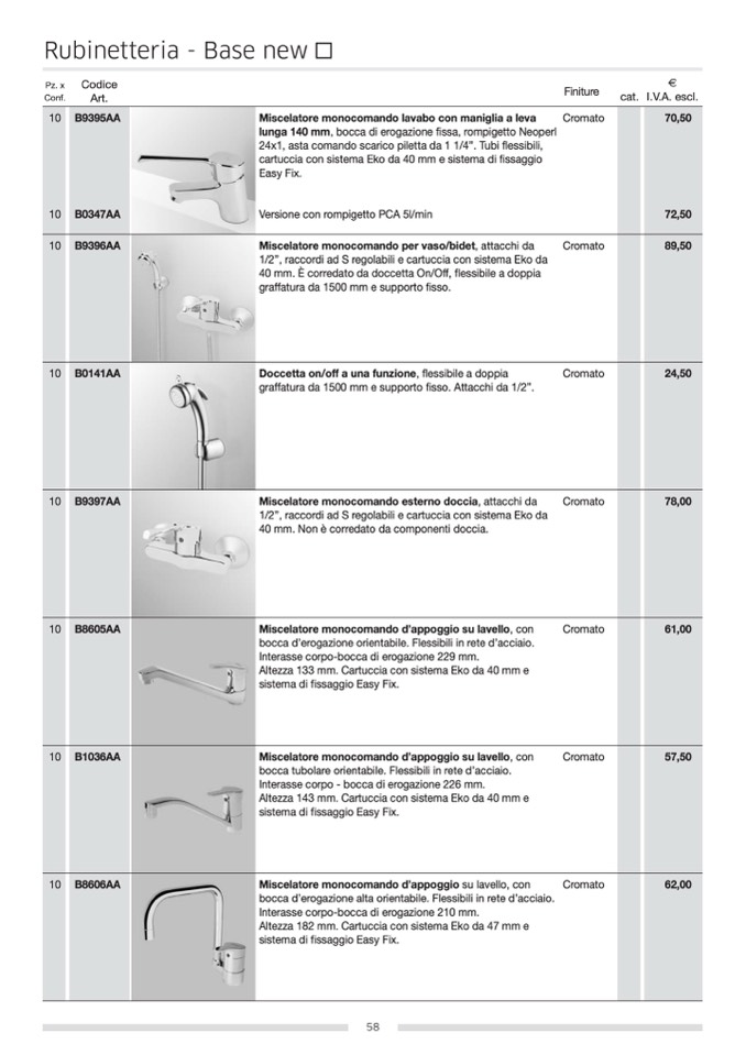 bocca d’erogazione orientabile. Flessibili in rete d’acciaio.