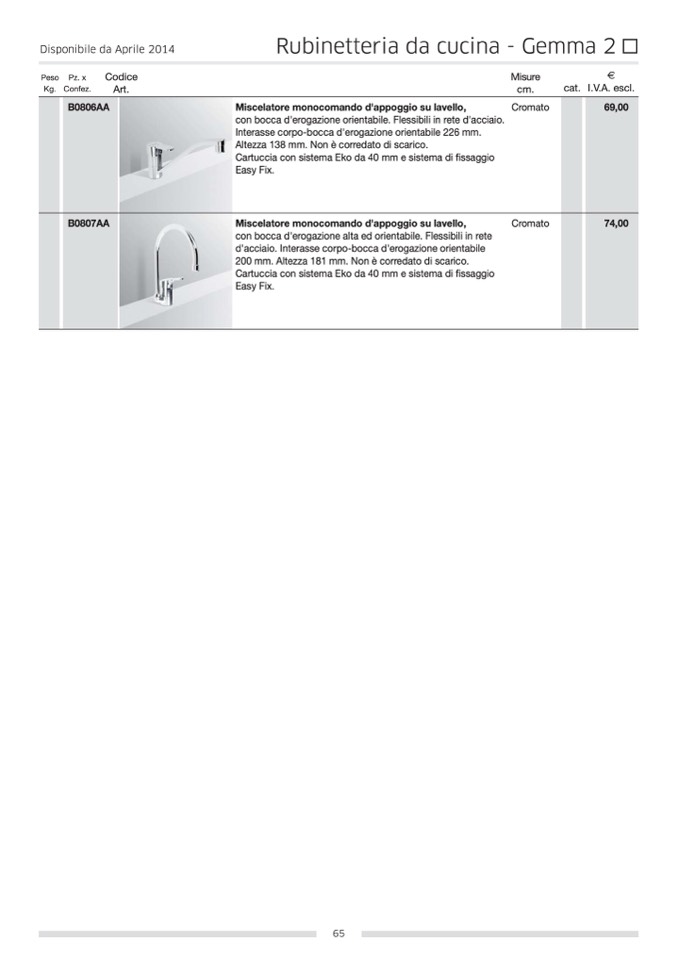 d'acciaio. Interasse corpo-bocca d'erogazione orientabile