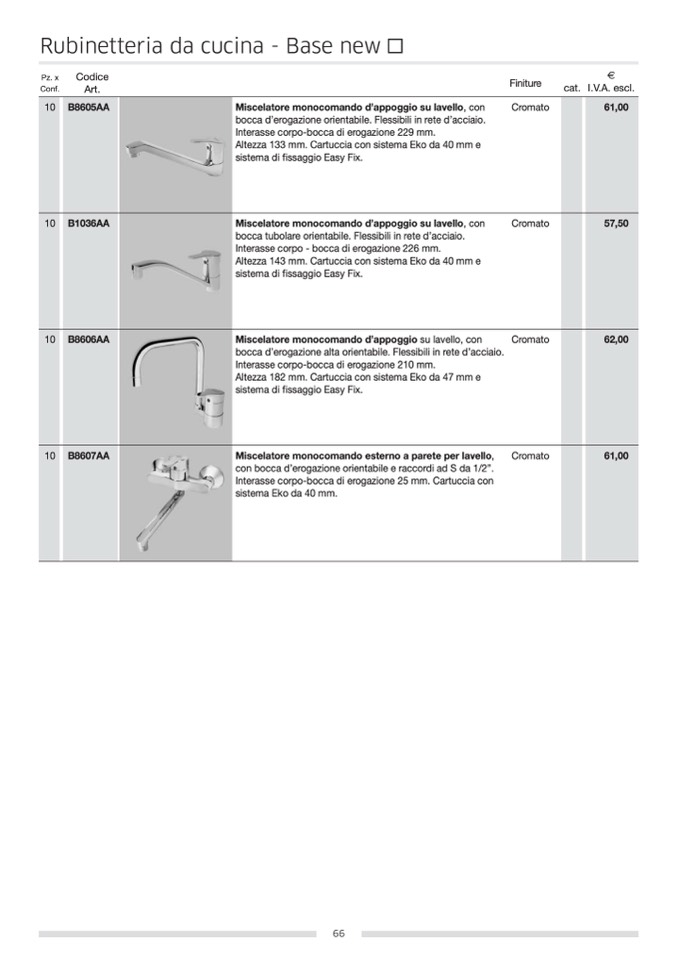 bocca d’erogazione orientabile. Flessibili in rete d’acciaio.