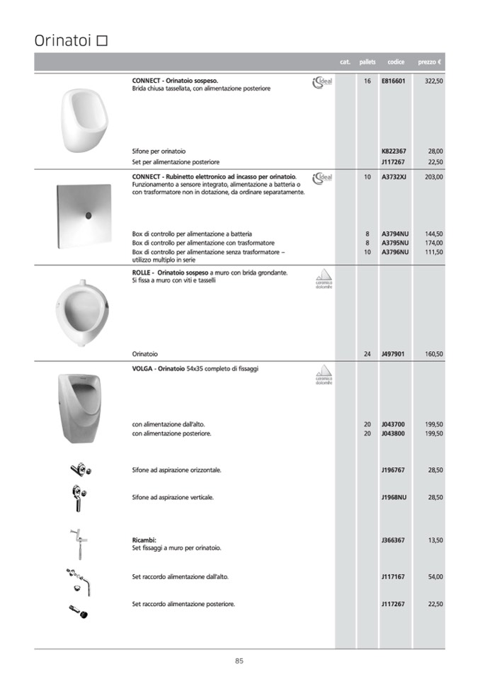 ROLLE - Orinatoio sospeso a muro con brida grondante.