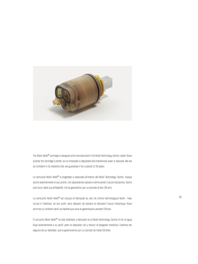 El cartucho Nobili Widd® ha sido diseñado y fabricado en el Nobili Technology Centre. En él, el agua