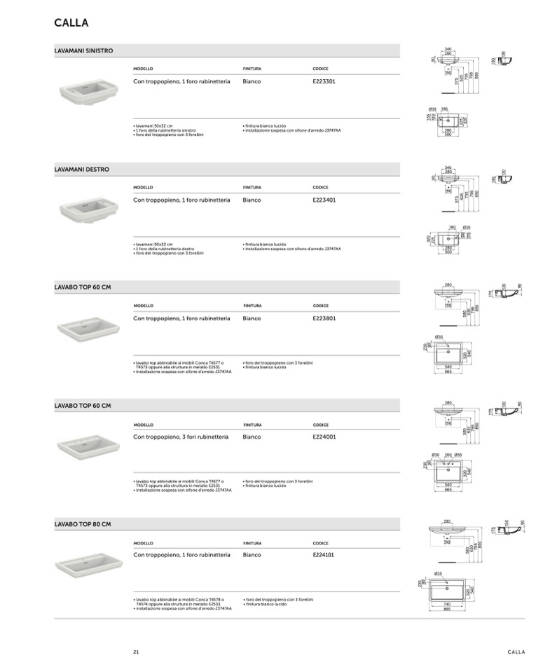 • lavabo top abbinabile ai mobili Conca T4577 o