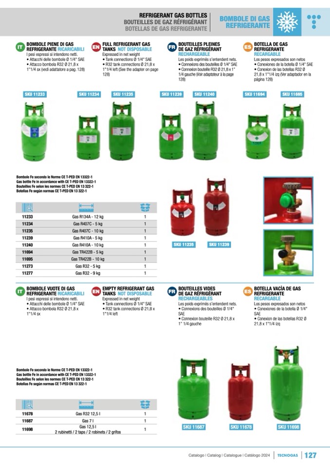 • Connexion bouteille R32 Ø 21,8 x 1’