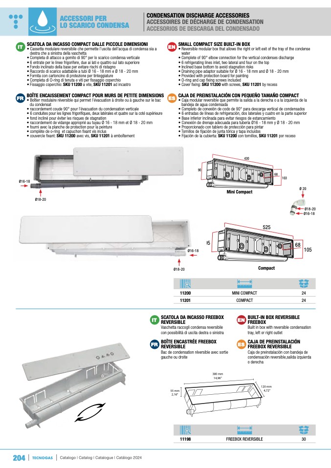 • Reversible modular box that allows the right or left exit of the tray of the condense