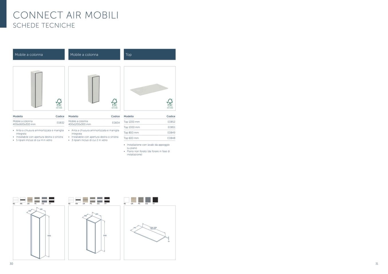 • Piano non forato (da forare in fase di