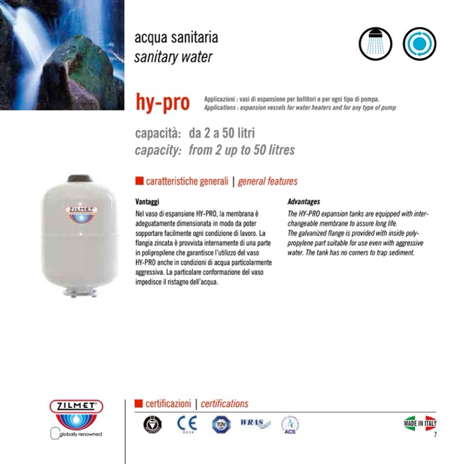 Applicazioni : vasi di espansione per bollitori e per ogni tipo di pompa.
