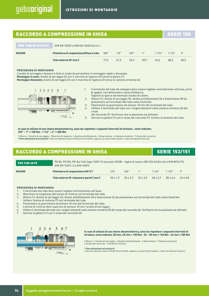 6 Corpo del raccordo · 7 Anima di rinforzo