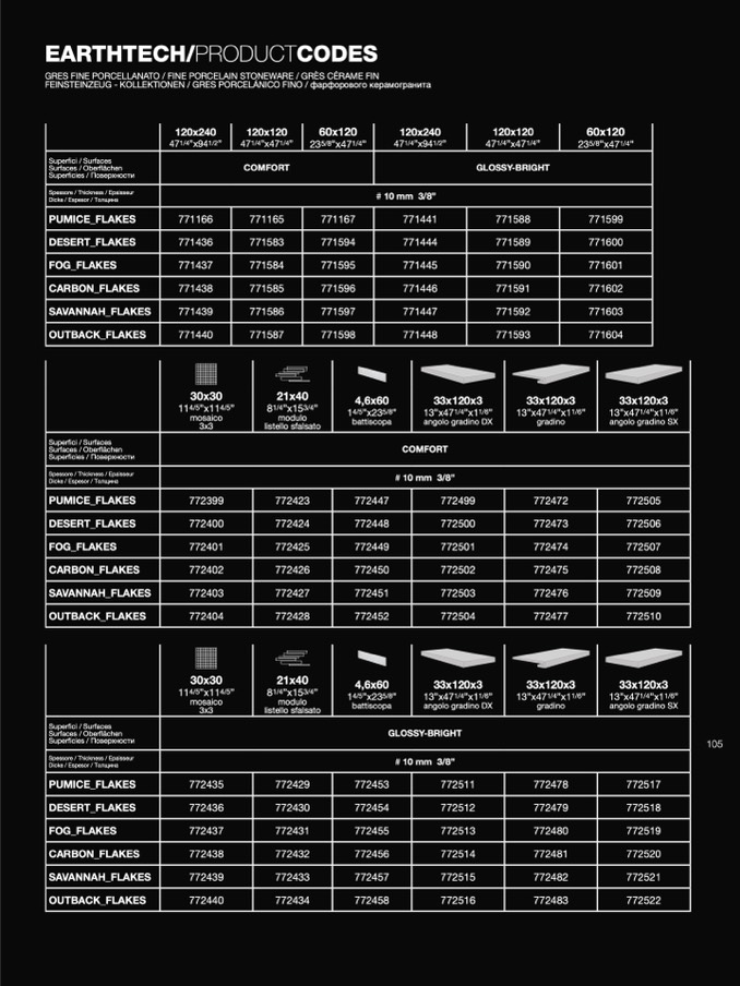 GRES FINE PORCELLANATO / FINE PORCELAIN STONEWARE / GRÈS CÉRAME FIN