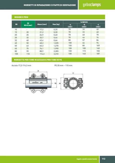 MORSETTO PER TUBO IN ACCIAIO E PER TUBO IN PE
