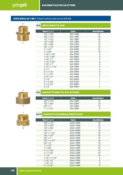 SERIE REGULAR [ BR ] - Filetti conformi alla norma ISO 228