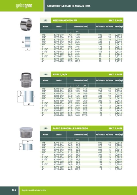RACCORDI FILETTATI IN ACCIAIO INOX