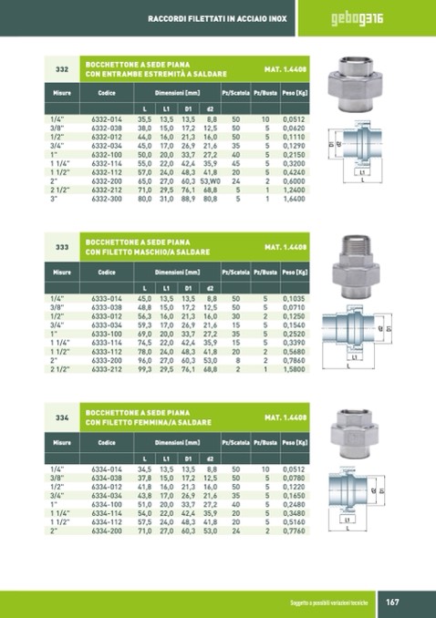 RACCORDI FILETTATI IN ACCIAIO INOX