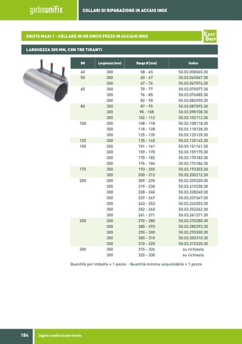 UNIFIX MAXI 1 - COLLARE IN UN UNICO PEZZO IN ACCIAIO INOX