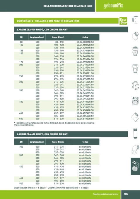 * I collari con larghezza 400 mm e 500 mm sono disponibili solo ed esclusiva-