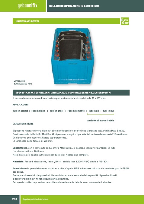 Con il contenuto della Unifix Maxi Box XL si possono eseguire riparazioni di tubi con diametro da 213 a 669 mm.