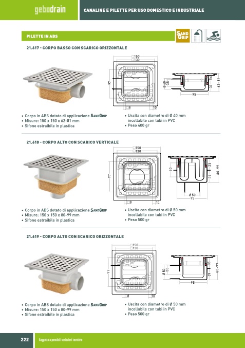 • Corpo in ABS dotato di applicazione SandGrip