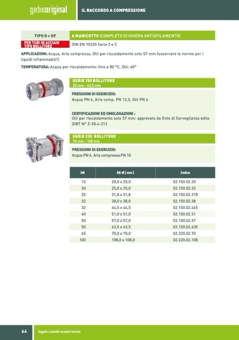 APPLICAZIONI: Acqua, Aria compressa, Olii per riscaldamento solo 57 mm (osservare le norme per i