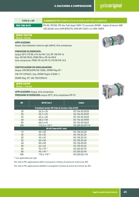 Aria compressa: PE80, PE-Xa PN 10, PE100 PN 12,5