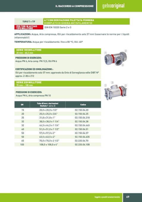 A T CON DERIVAZIONE FILETTATA FEMMINA