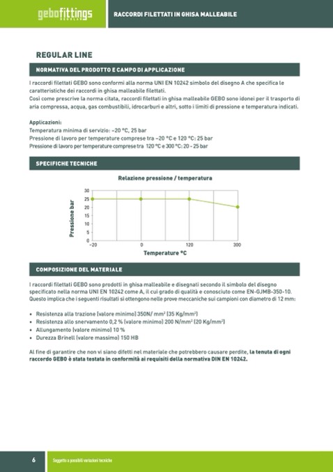 Così come prescrive la norma citata, raccordi filettati in ghisa malleabile GEBO sono idonei per il trasporto di