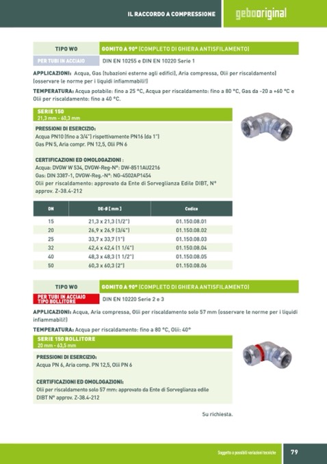 APPLICAZIONI: Acqua, Gas (tubazioni esterne agli edifici), Aria compressa, Olii per riscaldamento)