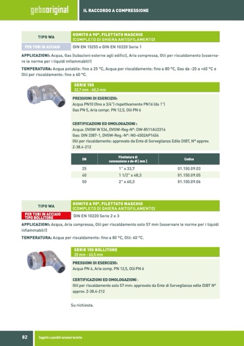 APPLICAZIONI: Acqua, Gas (tubazioni esterne agli edifici), Aria compressa, Olii per riscaldamento (osserva-