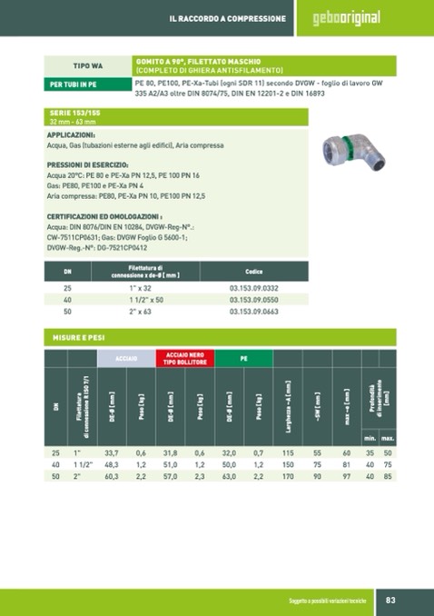 Acqua: DIN 8076/DIN EN 10284, DVGW-Reg-N°.: