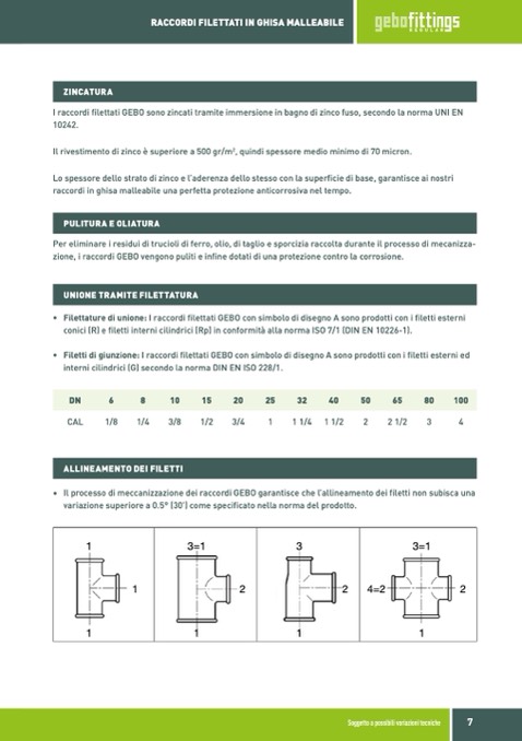 • Filettature di unione: I raccordi filettati GEBO con simbolo di disegno A sono prodotti con i filetti esterni