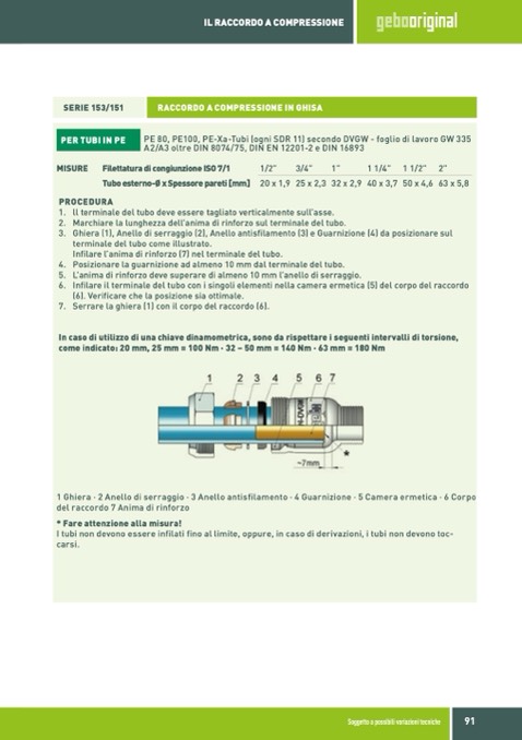 7. Serrare la ghiera (1) con il corpo del raccordo (6).