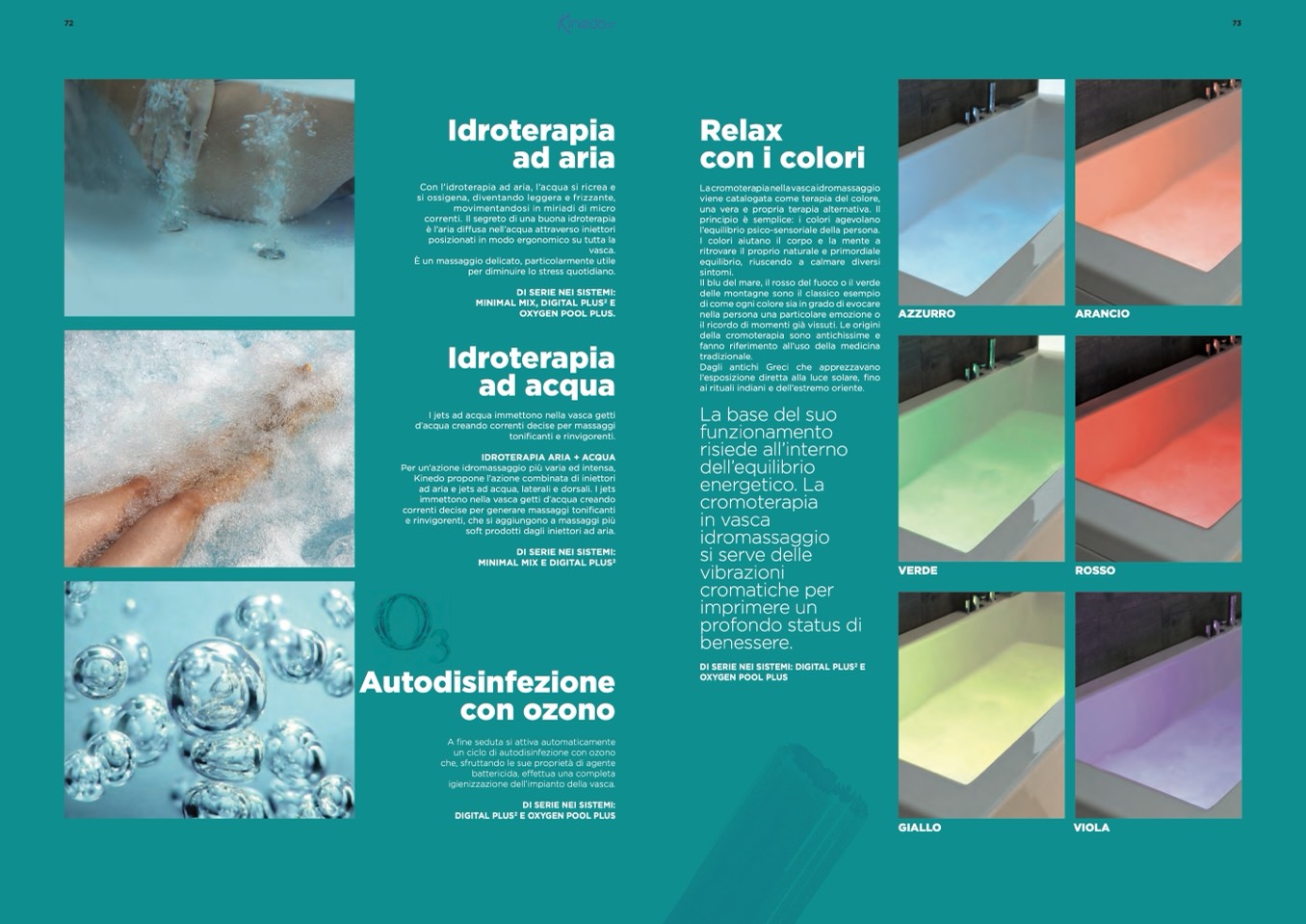 ad aria e jets ad acqua, laterali e dorsali. I jets