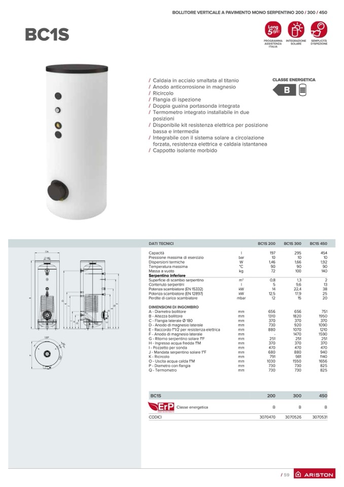 BOLLITORE VERTICALE A PAVIMENTO MONO SERPENTINO 200 / 300 / 450